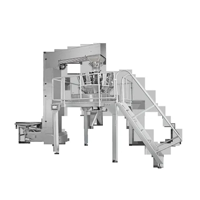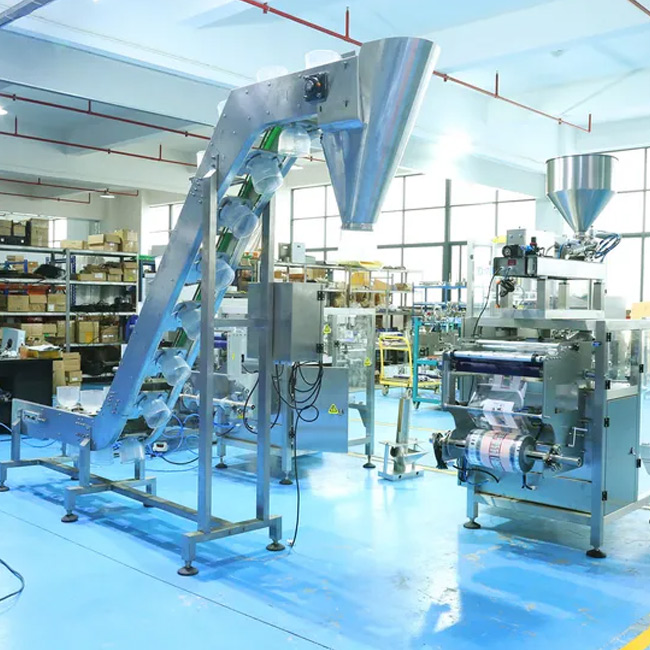 2.Vertical conveyor for feeding dry products up vertically and discharging them into a hopper of either a multihead or a linear weigher.